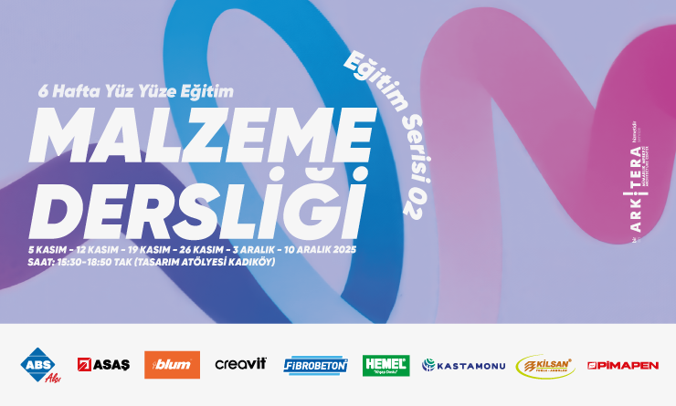 Malzeme Dersliği Eğitim Serisi’nin ikincisi 5 Kasım-10 Aralık 2025 arasında Çarşamba günleri saat 15:30-18:50 arasında Tasarım Atölyesi Kadıköy’de yapılacaktır. 26 Kasım 2025 Çarşamba günkü ders Kastamonu Entegre Genel Merkez Binası’nda yapılacaktır.